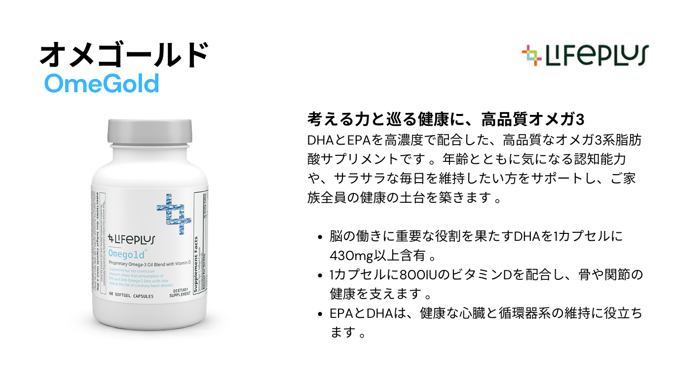 オメゴールド(OmeGold)は、オメガ3系脂肪酸であるDHA・EPAを効率的に補える栄養補助食品です。