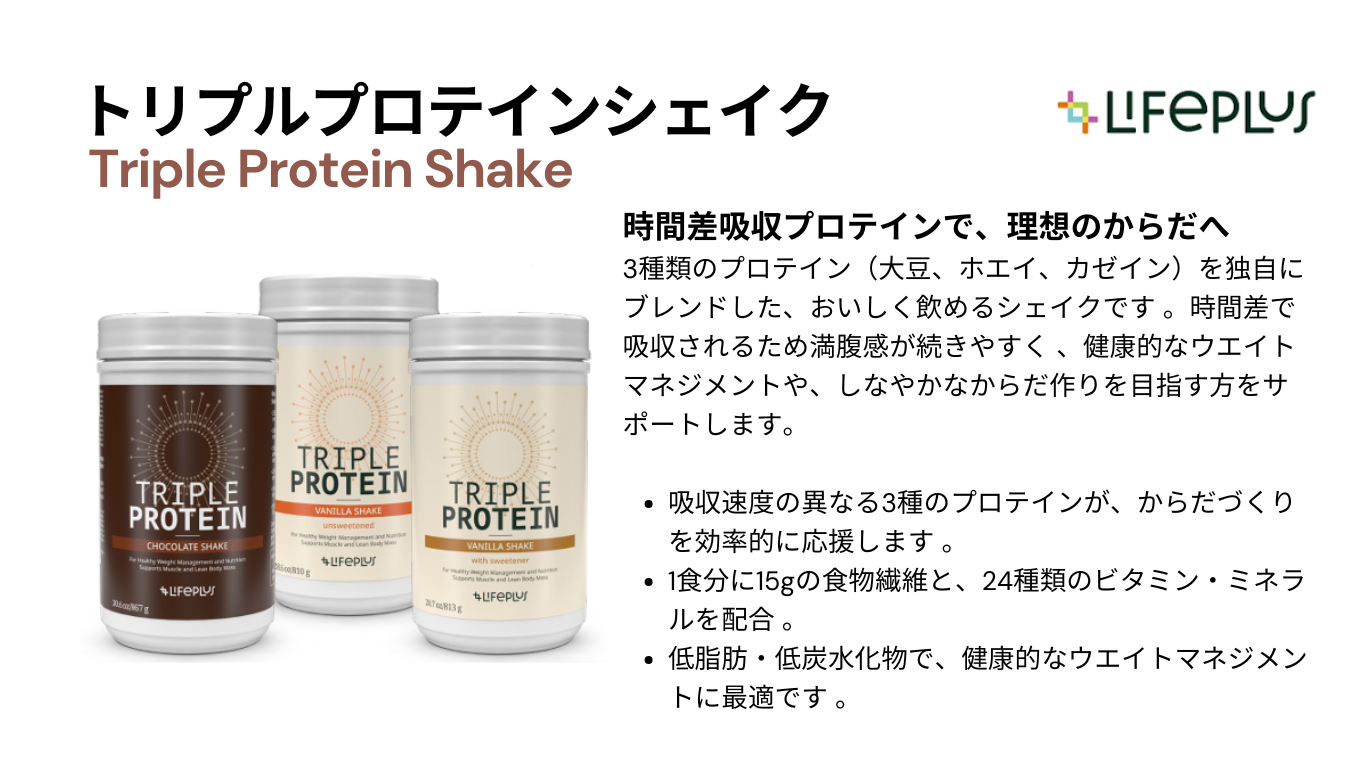 トリプルプロテインシェイクは、あなたの生活にやさしく寄り添いながら、からだづくりを支えてくれる一杯です。