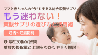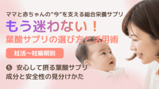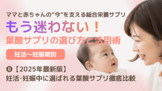「どの葉酸サプリを選べばいいのかわからない…」そんな妊活・妊娠中のママに向けて、葉酸サプリのなかでもよく話題にあがるサプリメントを厳選してご紹介します。吸収率・成分・安全性・続けやすさなど、これまでお伝えしてきたポイントをもとに詳細を比較し...